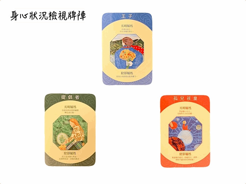 由於個案自己認為「提倡者」這個原型,有種可能讓自己又陷入二元對立的感覺,想要拿掉,所以最後又抽了一張「女神」原型。這象徵著一種行為的替換,於是我也帶領個案自已去思考,究竟要如何成為自信、漂亮的「女神」。雖然女神可能容易受到多人攻擊,不論是羨慕、嫉妒、酸葡萄….容易被放大檢視,但她可以在有原則的狀態下,有智慧地隨心,自由自在生活。