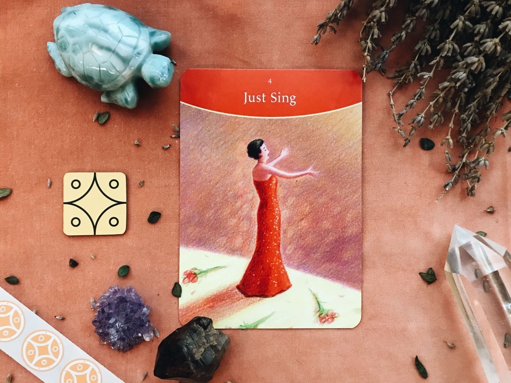透過唱歌,讓你的靈魂更貼近你的身心,進而將這個頻率帶到世界。唱歌能協助靈魂的進展,為生命增添光彩與魔力。你可以哼唱你最愛的搖籃曲或搖滾歌曲。翻唱民間歌謠、國歌或是自行編曲都好,讓自己整天充滿在旋律之中吧!別讓小我中斷你的歌謠。當你歌唱,你會喚醒天使與守護靈進入你的生活。當你大聲歌唱,就能協助打開心輪,讓靈魂之光充滿你的全身,也能協助別人打開他們的心房。