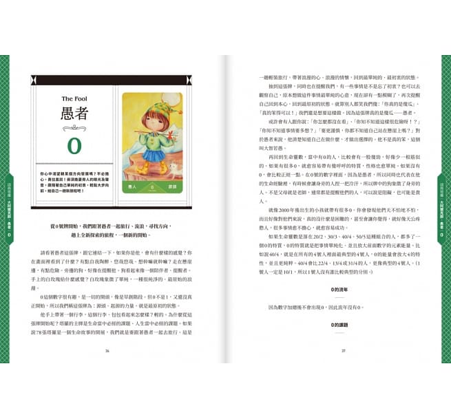 在《諮商塔羅》中,為了更理解牌義與性格,加入生命靈數系統。每個人都擁有獨一無二的生命數字,用淺顯易懂的方式與塔羅系統結合,讓解讀牌義不再只能照本宣科,而是找到一條契合個人的道路。這麼做不僅更深入提問者的內心世界,也更能掌握來自塔羅的訊息,另外還加入了流年解析。